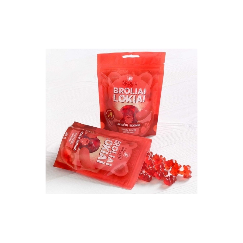Sudedamosios dalys: gliukozės sirupas; cukrus; medus 12 %; želatina, rūgštis: pieno rūgštis; aviečių sulčių koncentratas 9 %; aromatas; juoduojų serbentų ir morkų koncentrantai; glainės medžiagos – bičių vaškas (baltas ir geltonas) ir karnaubo vaškas; vitaminas C, niacinas; vitaminas E; pantoteno rūgštis; vitaminas B6; folio rūgštis; biotinas; vitaminas B12; tiaminas (vitaminas B1); riboflavinas (vitaminas B2).