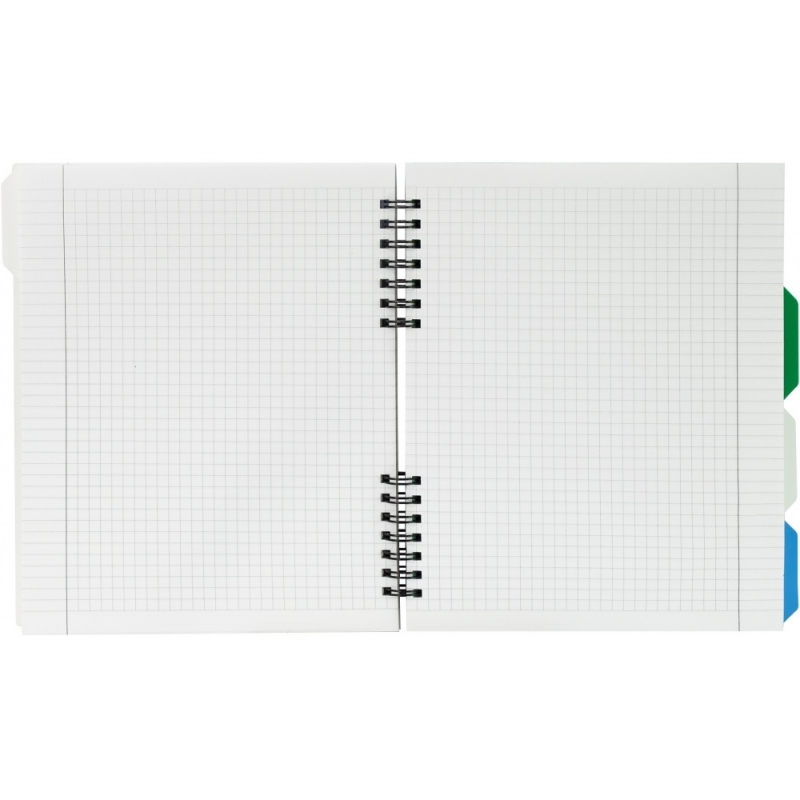 Bloknotas VOVERĖS, Optima, B5, 120 lapų, langeliais, 60gsm, su spirale šone, su 4-iais skirtukais, plastikinis viršelis