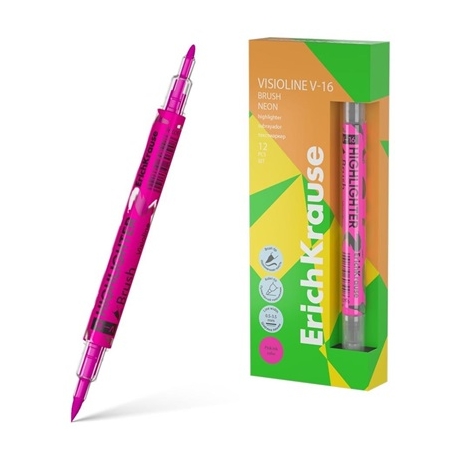 Dvipusis teksto žymeklis VISIOLINE V-16 BRUSH NEON, ErichKrause, 0.5-3.5mm, rožinės sp.