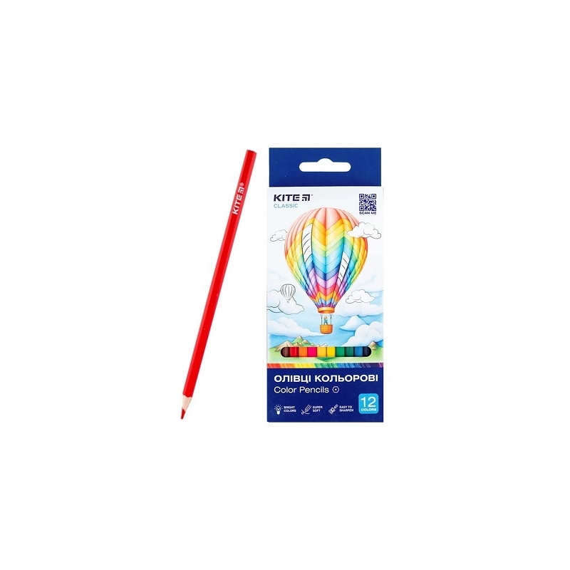 Spalvoti šešiabriauniai pieštukai CLASSIC, Kite, 12 sp.